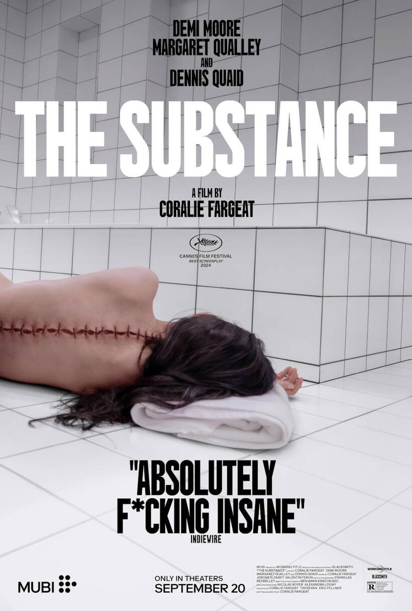 The Substance” (2024) - A French-American body horror satire directed by Coralie Fargeat, starring Demi Moore as an aging actress who injects a black-market serum to spawn a youthful alter ego, only for the experiment to devolve into grotesque mutation and self-destruction, paralleling “Eat Me”’s narrative of opulent gluttony escalating into cannibalistic horror as a metaphor for the devouring pursuit of unattainable perfection. Box Office: $77.3 million